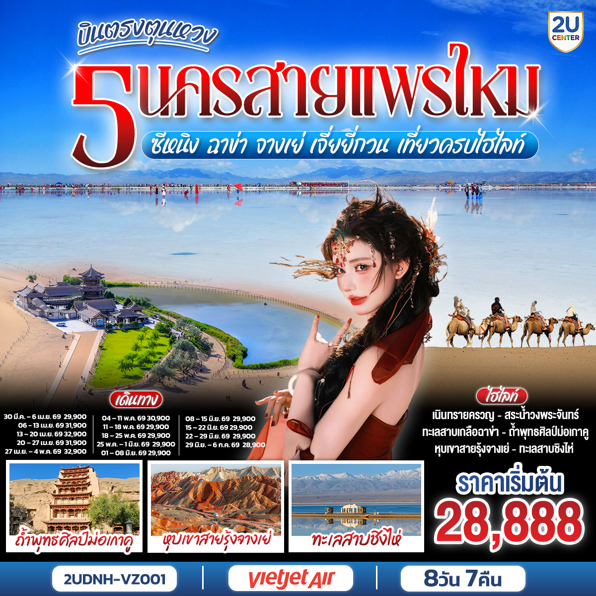 | 8 | ซีหนิง – ผลิตภัณฑ์ผ้าไหม - ถนนคนเดินเซี่ยหนานกวน -ซีหนิง (สนามบินเฉาเจียเป่า) กรุงเทพฯ(สนามบินสุวรรณภูมิ) (VZ3691 : 23.40-02.45+1) | ✔ | ✔ | ✘ |